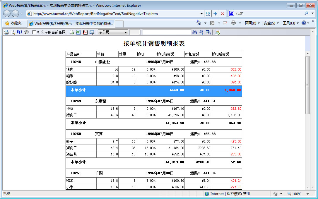 | 负数红字显示 | RedNegativeText\RedNegativeText.htm | 实现负数值的特殊显示,并在查询显示与打印显示时展现不同的结果。 | |