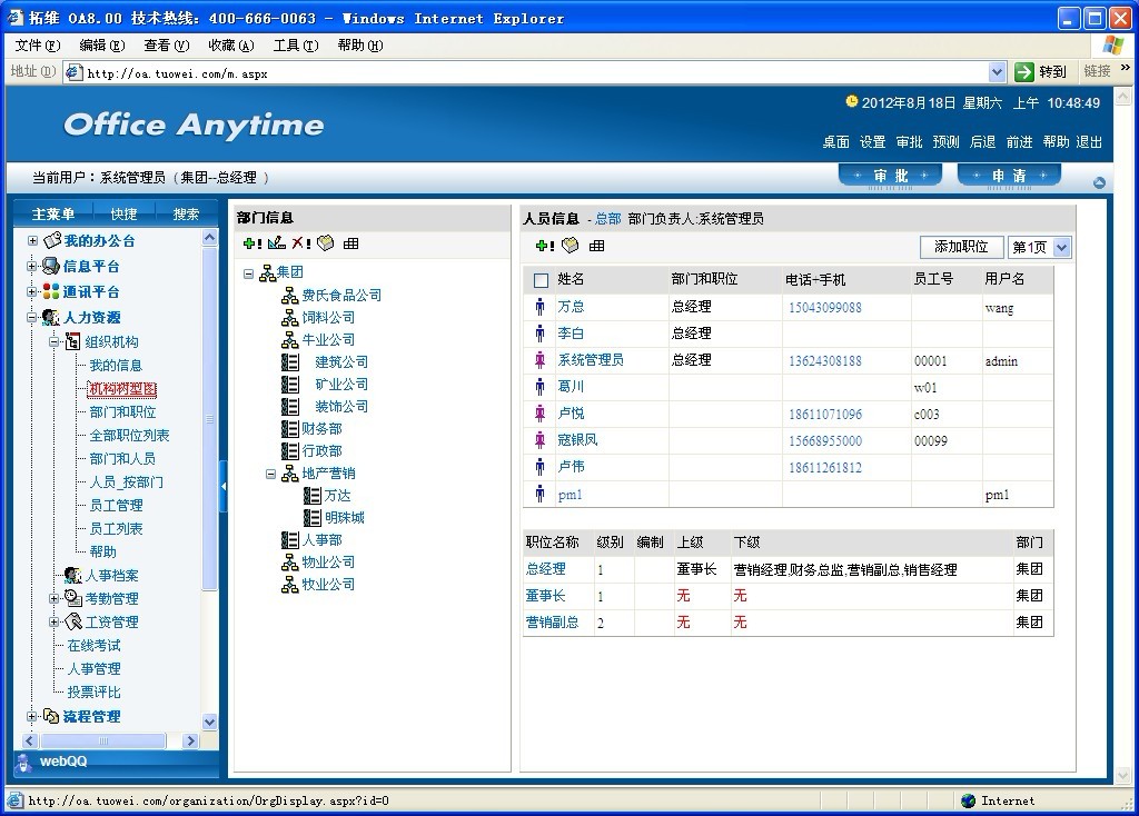 机构树型图能够更加直观显示各个部门所属机构,和每个部门的职位负责任,员工职位信息,还有机构负责人的信息,机构的说明、简介、基本信息同时也包括各个部门的说明、简介、基本信息等。