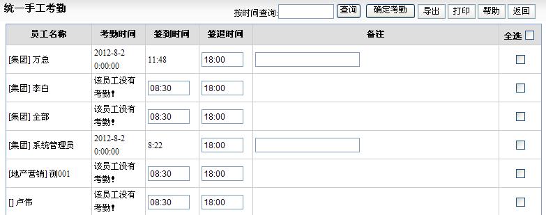 当天统一手工考勤