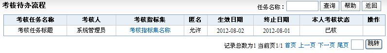进行考核考核人单击“人力资源-绩效考核-进行考核”菜单进入考核打分页面,左边单击被考核人姓名,右边进行考核打分的录入及批注,单击“确定”则考核数据上报成功。 说明: 1、管理范围在系统管理-用户管理中设定。 2、新建考核任务时若不勾选“按照管理范围”,则所有的考核人可以对所有的被考核人进行考核,被考核人的最后各项得分及考核总成绩均取为平均值。 3 进行考核考核人单击“人力资源-绩效考核-进行考核”菜单进入考核打分页面,左边单击被考核人姓名,右边进行考核打分的录入及批注,单击“确定”则考核数据上报成功