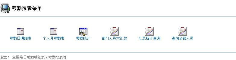 部门人员大汇总 查询全部人员 个人月考勤表 汇总统计查询 考勤日明细表 考勤统计