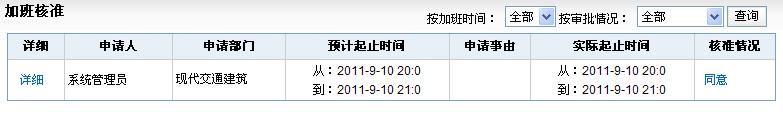 加班核准是对员工的实际加班情况进行核查处理。界面如下: