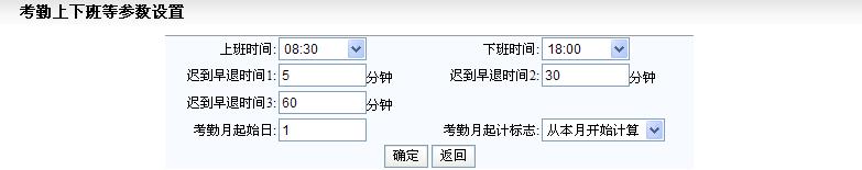 使用本功能设置本单位的考勤参数,如考勤起始时间、上班时间、下班时间等