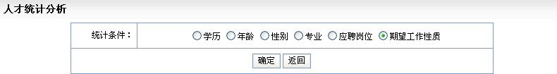 对人才库中的简历信息,人才分析模块可以进行统计分析,有助于人事管理员对人才库进行综合的了解。分析结果可形成饼状图和柱状图。