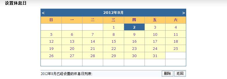 只能设置系统当前日期之后的休息日
