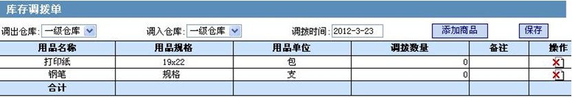 点击"调拨单明细报表"按钮进入调拨单明细报表界面