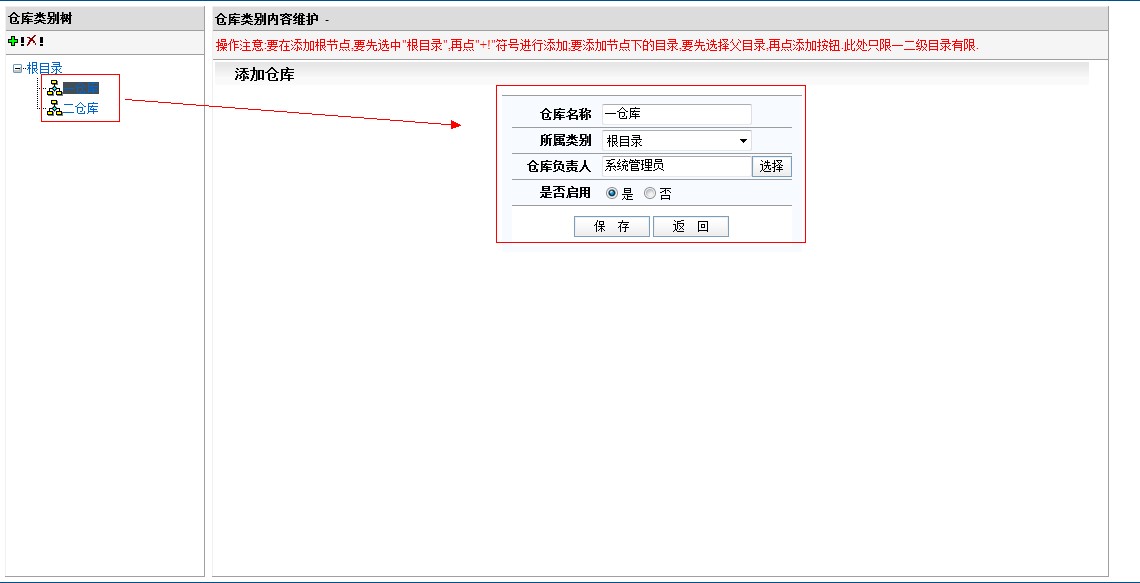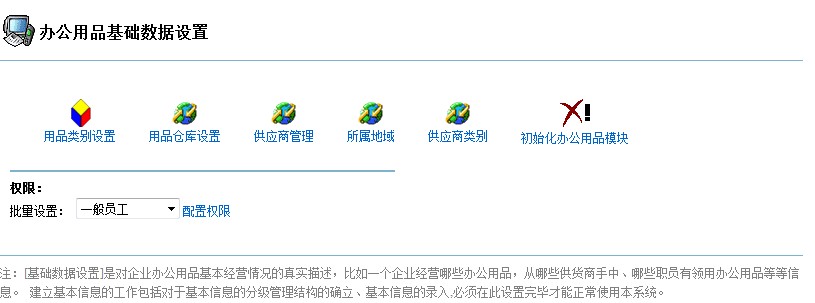 点击"用品仓库设置"按钮进入用品仓库设置界面