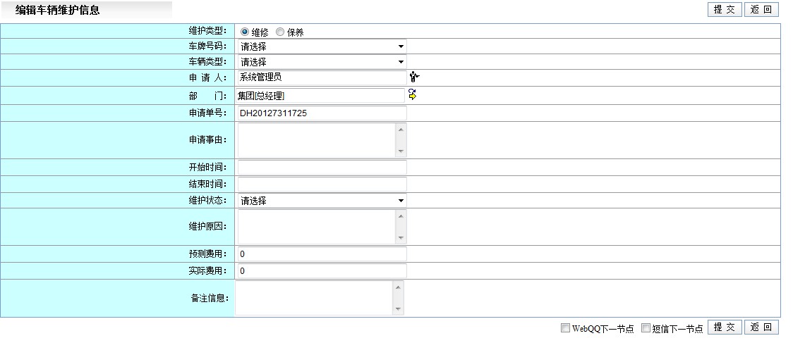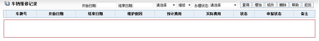 单击“修改”按钮,修改车辆资料; 可根据车辆类型和车辆状态查找车辆资料。(一般用户也可查询)
