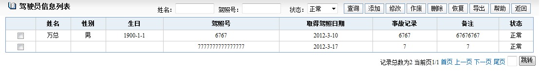 单击“恢复”按钮,恢复已被删除的驾驶员资料。