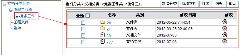 用户可新增、删除文档分类或下一级分类;分类注释;新增、删除文档;文档发布、查询权限设置。