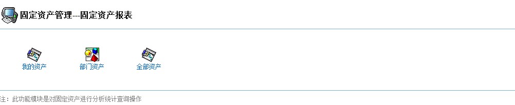 本模块具有权限限制,由登录者本人控制。是对本登录员工使用固定资产情况的查询。 点击"部门资产"按钮进入部门资产界面