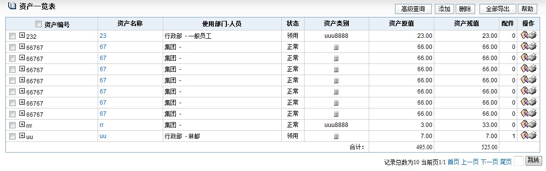 本模块具有权限限制,由指定的公司固定资产管理员对公司固定资产卡片的维护。