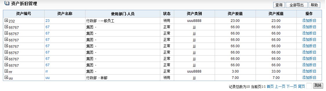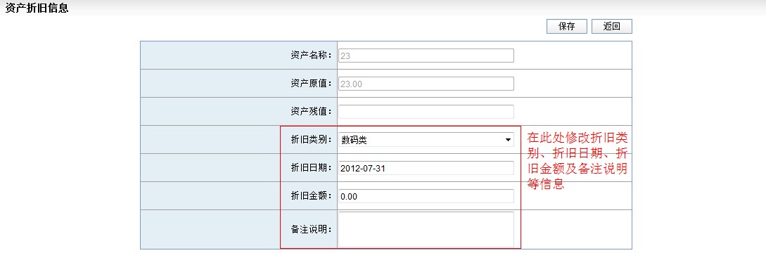 点击操作中的"添加折旧"按钮进入资产折旧信息界面