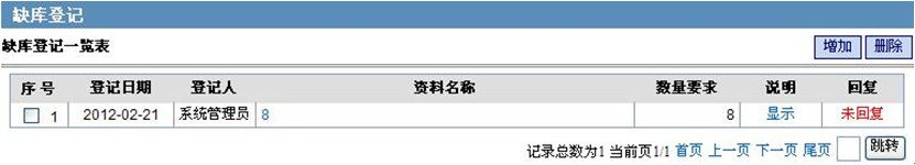 缺库登记