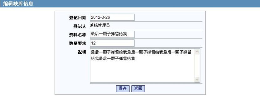 添加缺库图书登记信息: