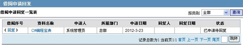 具有申请回复权限的用户可对已申请借阅的用户进行回复。